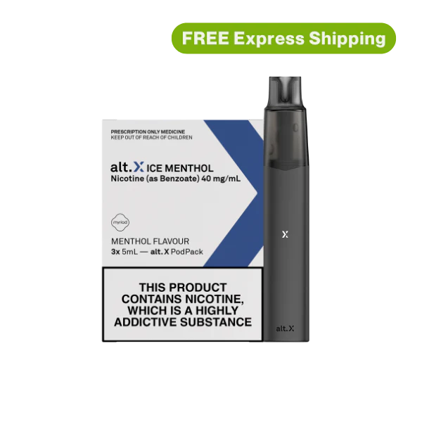 Everything you need to get started with alt. X Comes with a device and 3 x 5ml pods in your chosen strength and flavour
